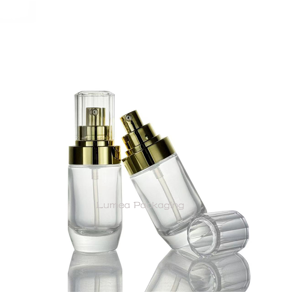 30ml Foundation Glass Bottle With Gold Pump/Plastic Cap